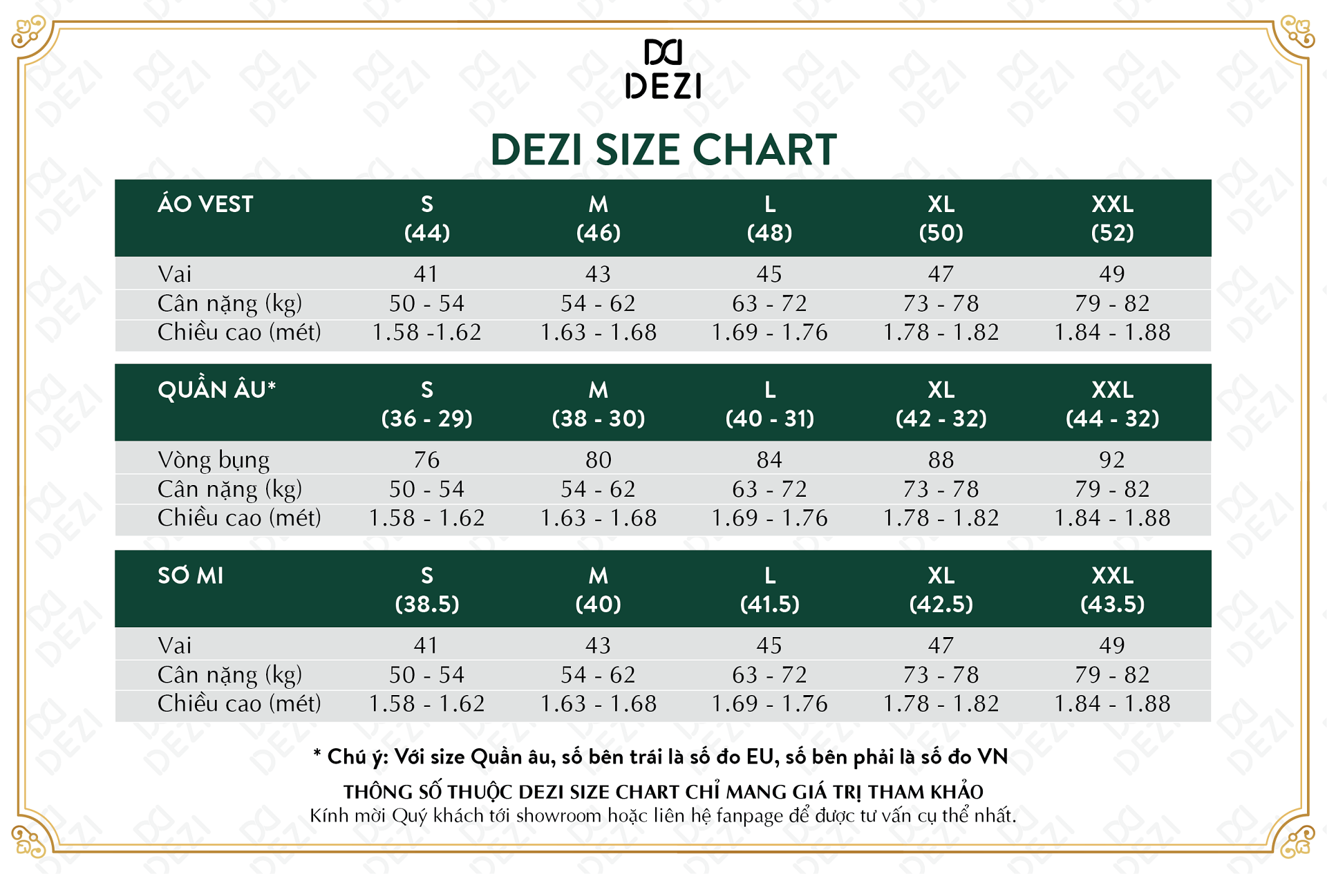 Bảng quy đổi SIZE